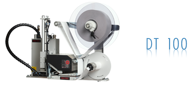 Thermoetiketten mit hoher Geschwindigkeit und variablen Daten zu bedrucken, dafür ist die DT 100 prädestiniert. Das Thermodruckmodul überzeugt durch kompakten Aufbau, die außergewöhnliche Robustheit und die überaus gute Zugänglichkeit. Appliziert werden die Etiketten per Stempelapplikator, der bei exakter Produktzuführung positionsgenau etikettiert und unterschiedliche Hubwege gekonnt ausgleicht. Dabei wechselnde Etikettenformate einsetzen zu können, steigert die Flexibilität und reduziert die Kosten.